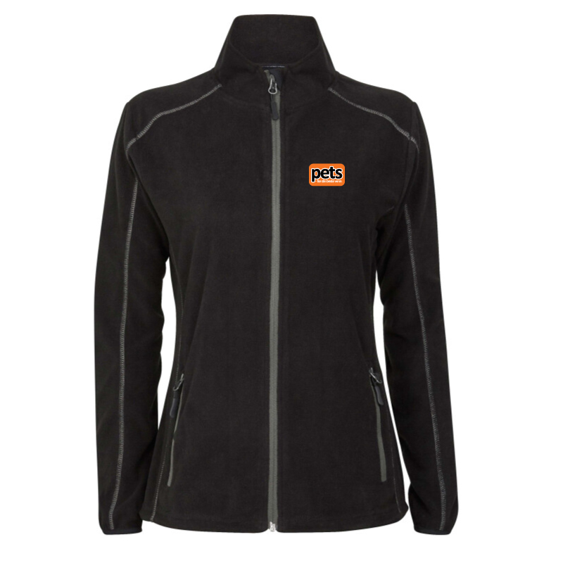 Lett og behagelig microfleece jakke. Sidelommer med glidelås og elastisk stramming i linning.